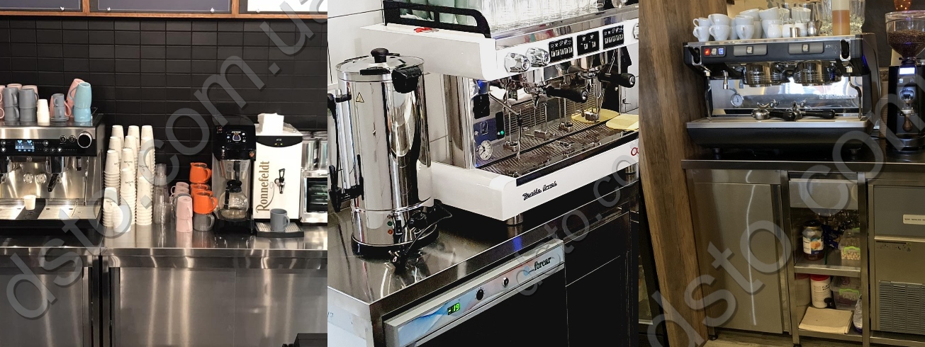 Особое внимание следует обратить на усиление столешницы, так как кофемашина - штука нелёгкая, нагрузка на тумбу для кофемашины нешуточная. В столешнице тумбочки под кофемашину предусматриваем отверстие для провода кофеварки. Снизу под столешницей - ящик для жмыха с валиком для выбивания холдера. Ещё ниже - бутыли с водой. Под них так же нужно правильно рассчитать размер отсека, чтоб поместилось кратное их количество. Порой в размере отсека не хватает сантиметра только потому, что на этапе проектирования производитель это не учёл. Если же кофемашина подключена к центральному водоснабжению, в рамке которого предусмотрена фильтрация воды, тогда отсек, что под ящиком, можно применить для хранения кофе, молока, прочего расходника.