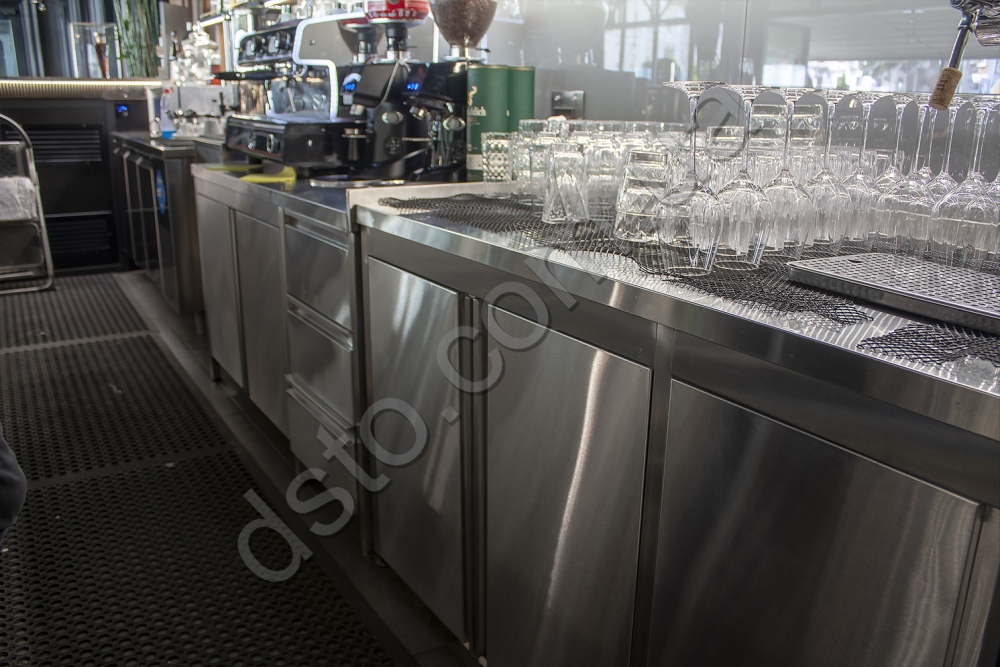Одно из наших любимых задач в работе - это комплектация бара. Здесь есть, где разгуляться профессионализму, дать волю креативу, применить произведенные наработки. Недавно в работу поступило сразу несколько баров. Это навеяло идею освежить и обновить информацию на эту тему. Так как наполнение бара зачастую - видимая часть интерьера, важным является качество и правильность этого наполнения. Принципиальное отличие барной мебели из нержавейки от подробных элементов кухни - её закрытая конструкция, так как нужно использовать место хранения рационально и по максимуму, при этом придерживаться задачи скрыть от глаз посетителя ненужные детали рабочего цикла. Поэтому комплектация, помимо барных станций, основывается на тумбах: тумба для кофемашины, тумба с мойкой, тумба для холодильников и под посудомойку - всё с дверями, всё с зашивками, всё с максимумом полок и ящиков. Определив принципиально зональность барных операций, приступаем к созданию конструкции.