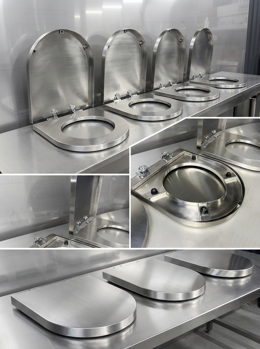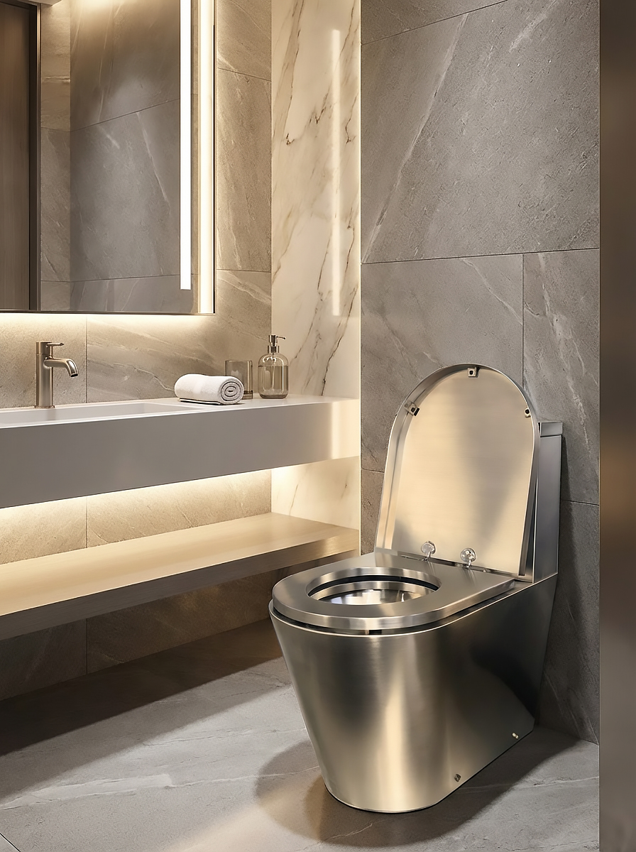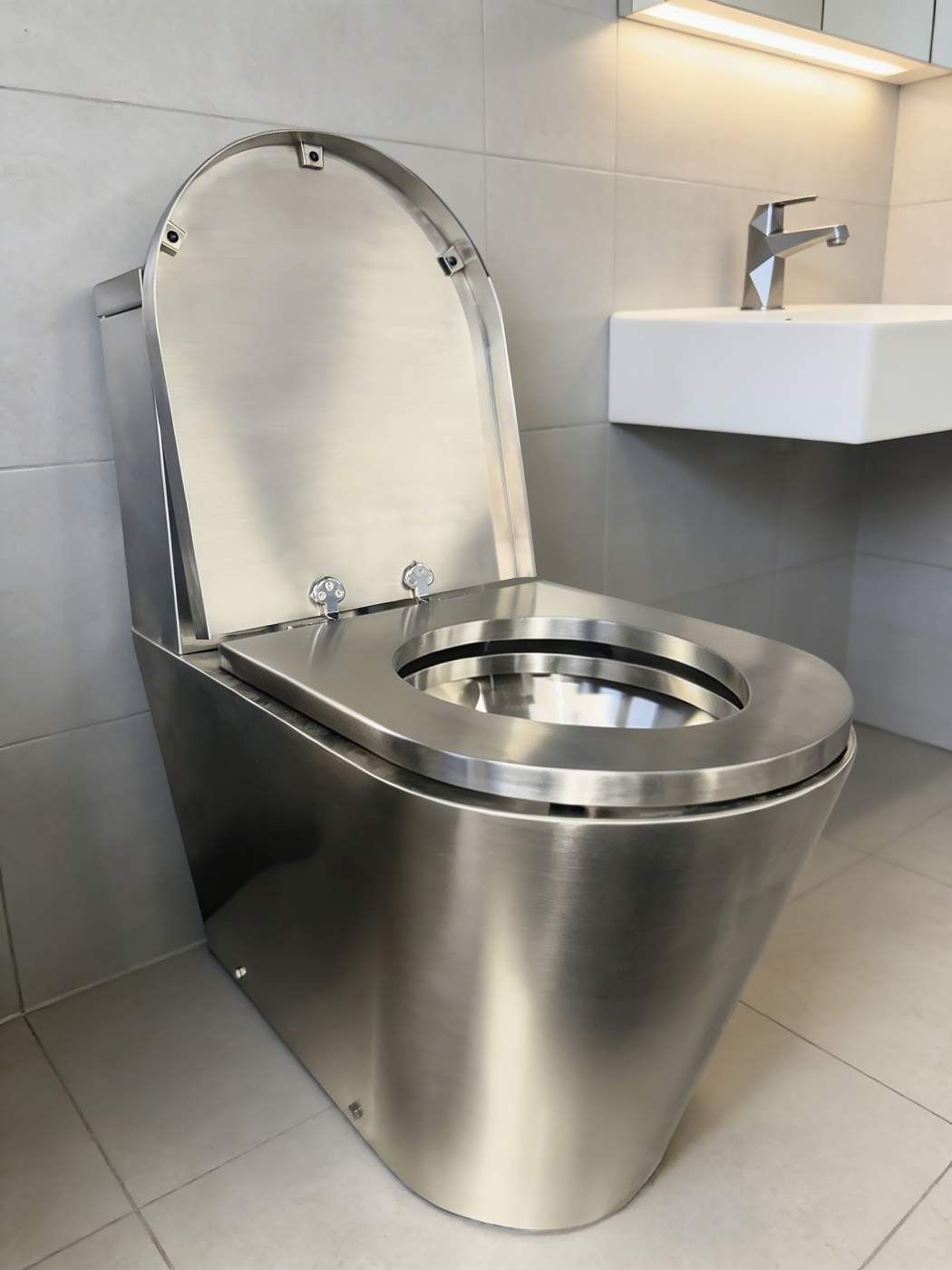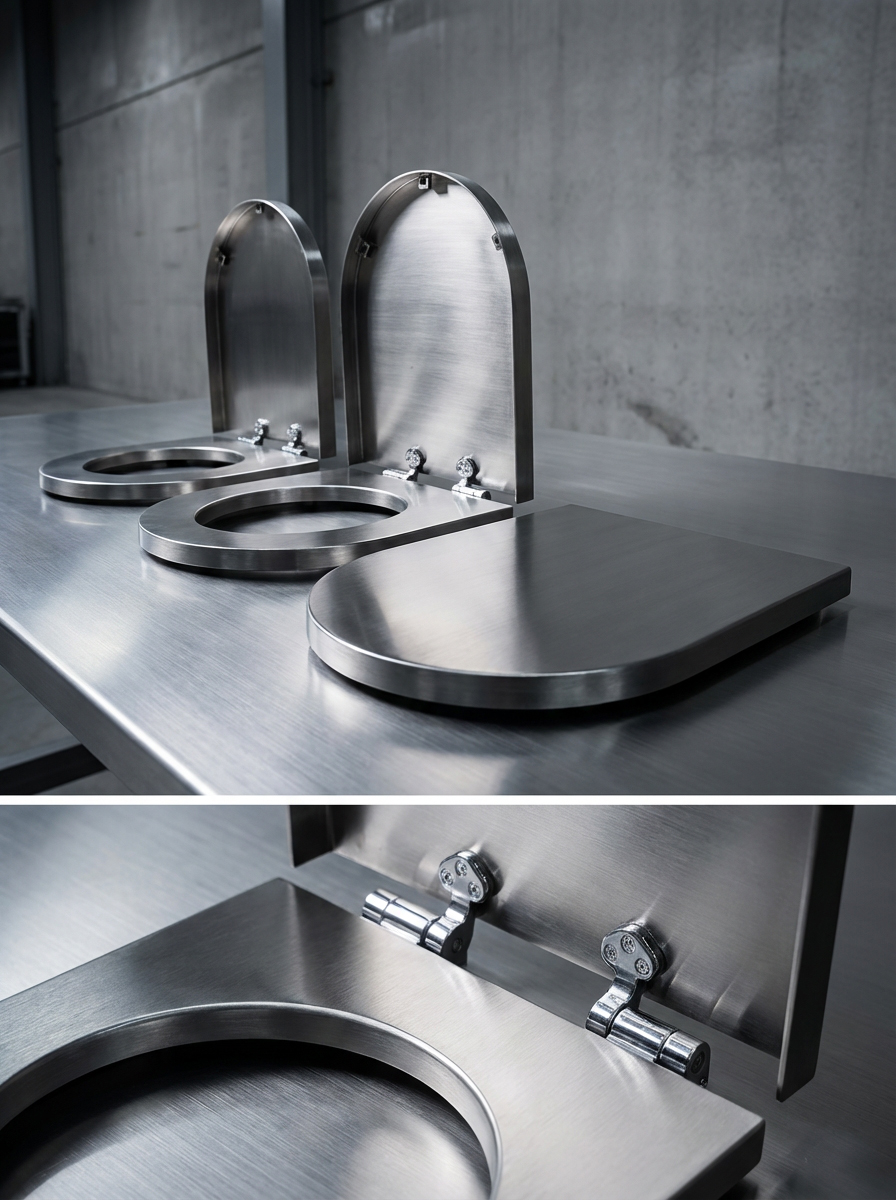 Сиденье для унитаза из нержавеющей стали максимально подходит по форме и практически идеально повторяет контур его верхней части.