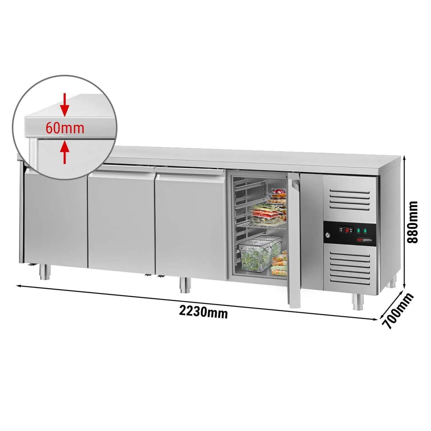 Морозильный стол ECO – это высокоэффективное профессиональное оборудование, специально разработанное для пиццерий и других профессиональных кухонь. Выполнен из нержавеющей стали AISI 304, что обеспечивает долговечность и простоту в уходе. Стол оснащён цифровым термостатом, подогревом рам дверей и мощным холодильным агрегатом. Конвекционное охлаждение и автоматическая система оттайки обеспечивают стабильную работу при низком энергопотреблении.