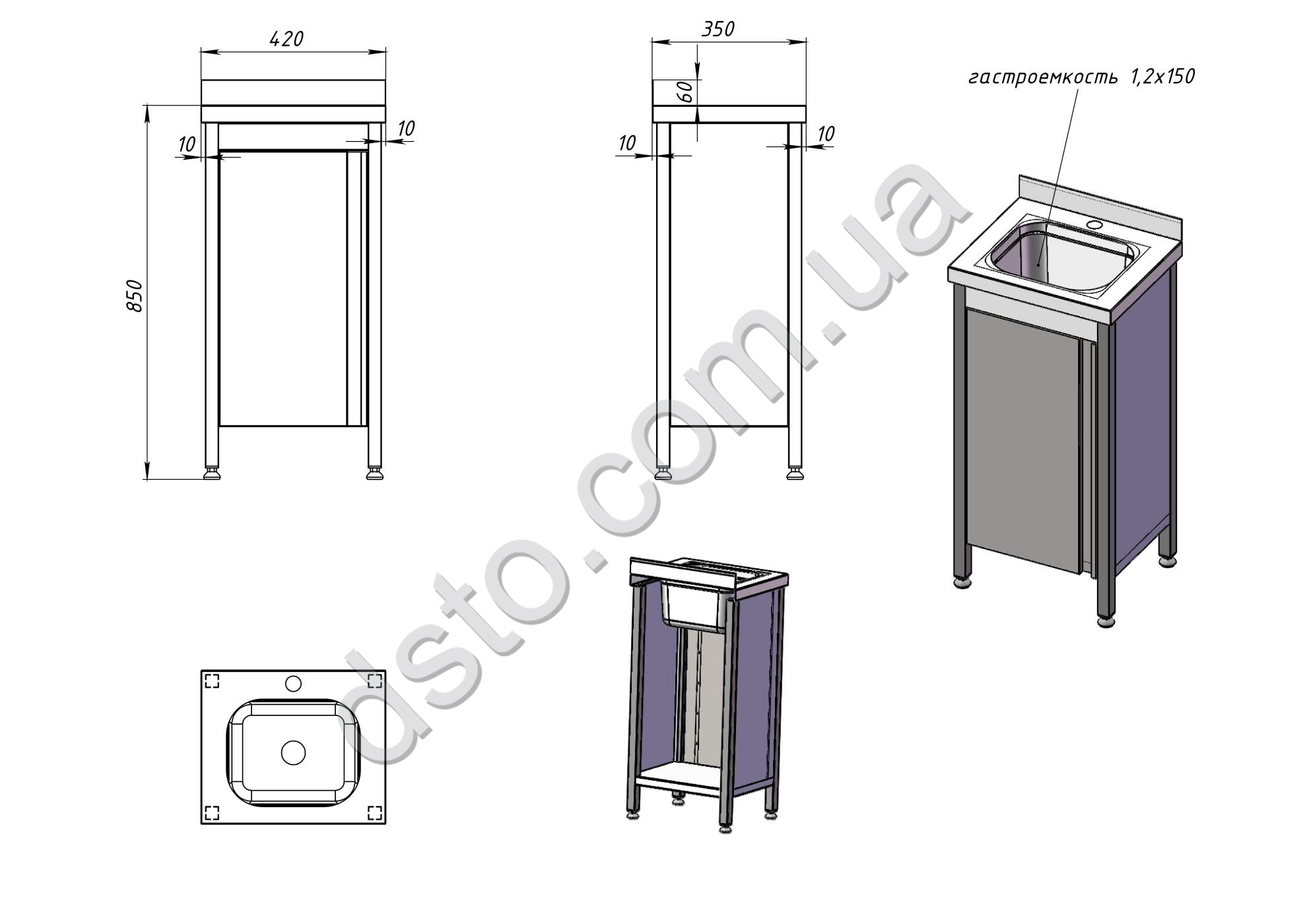 Рукомойник-тумба 420/350/850, без отступа ног сзади