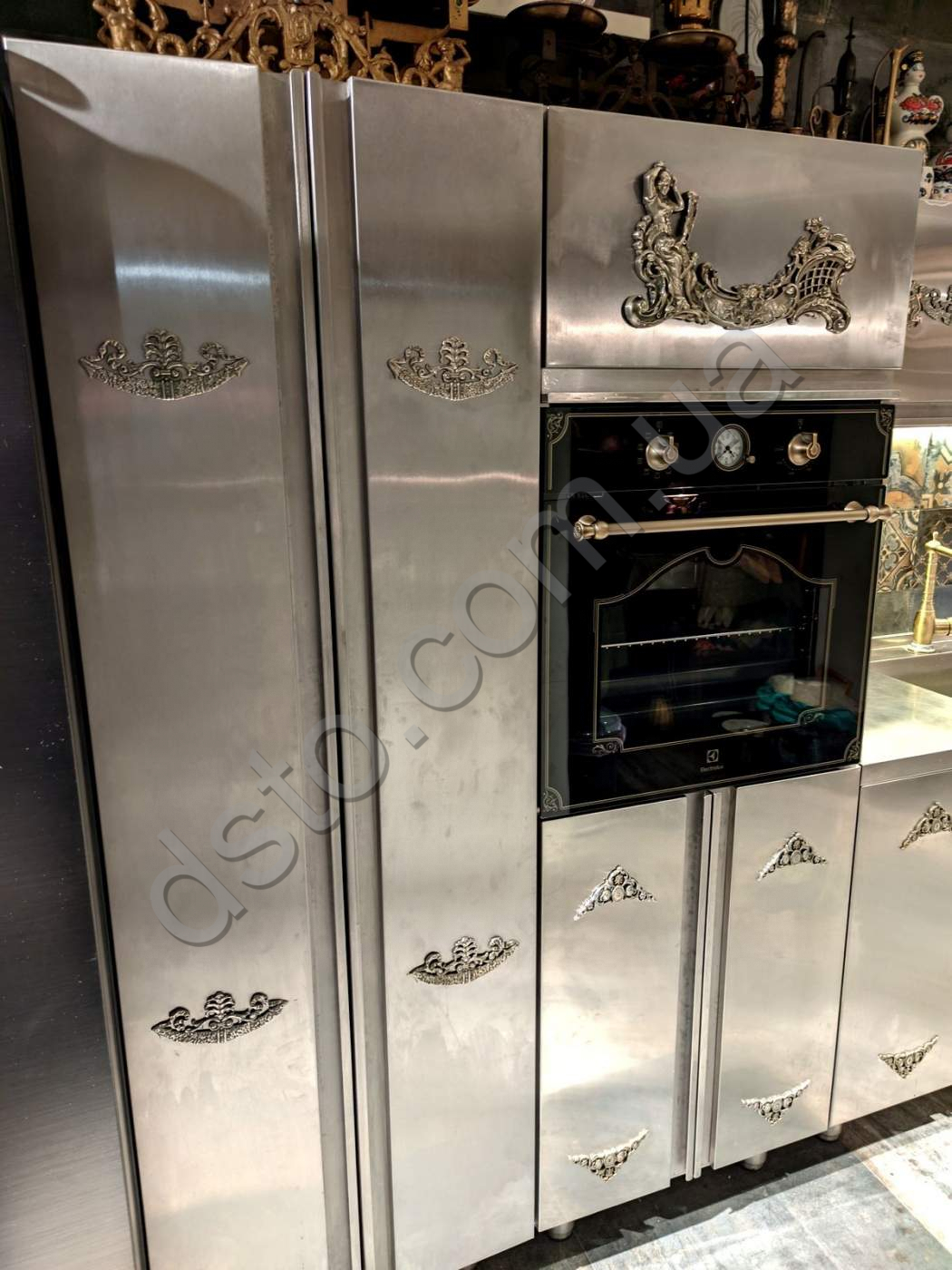 Шкаф предназначен для установки в ниши бытовой техники и для хранения кухонного инвентаря. Внутри предусмотрены функциональные полки. Двери распашные. На открывание верхней секции установлены газ-лифт. Шкаф выполнен из нержавеющей стали марки AISI304 толщиной 1.2 мм, чтоб получить максимально ровную плоскость дверей, при этом не утяжелить конструкцию.