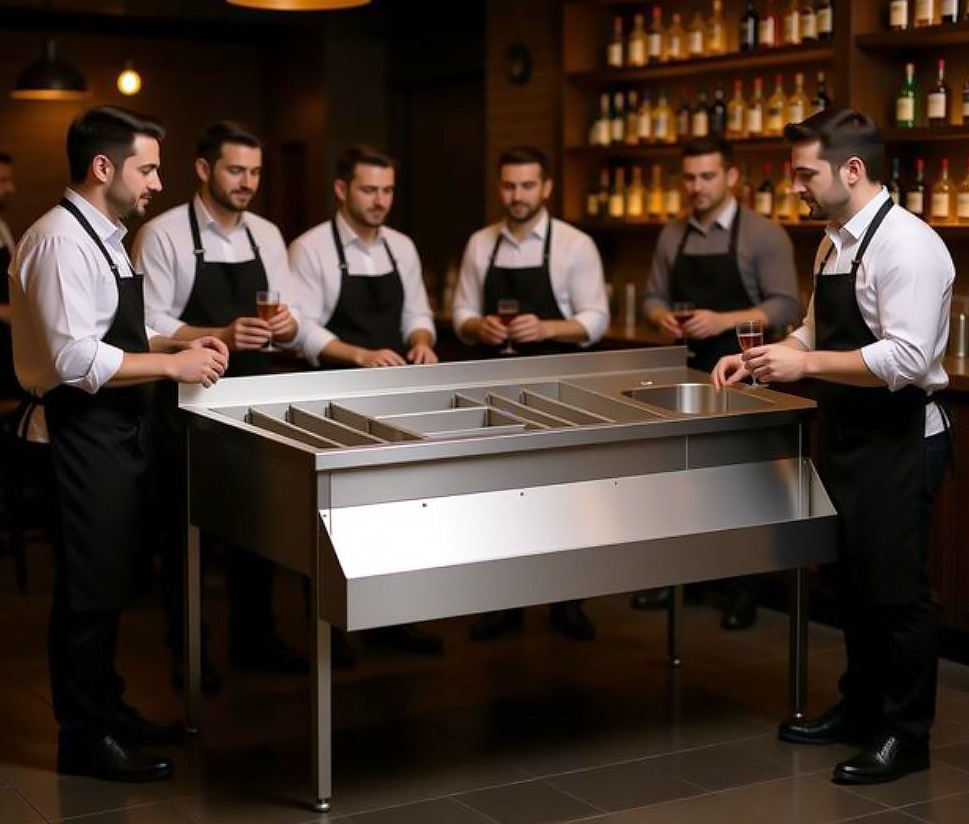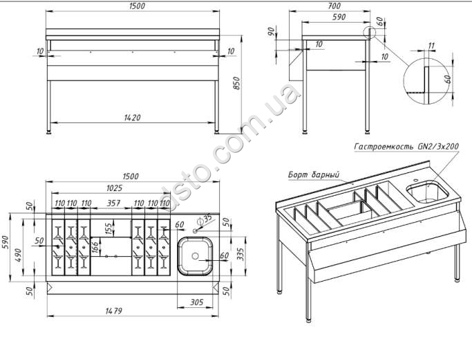 Станция бармена из нержавеющей стали (мойка справа) 1500х590(700)х850 DS3