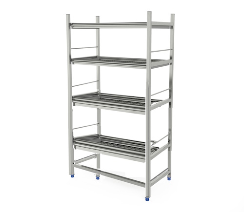 При большом потоке посетителей в заведениях общепита выгодно купить компактный и, в то же время, вместительный высокий стеллаж для сушки посуды из нержавейки (4 уровня под стаканы). Вся конструкция нейтрального оборудования изготовлена из пищевой нержавеющей стали. Предусмотрены металлические лотки для стекающей воды. Купить сушилку рационально с точки зрения простого ухода и долговечного использования.