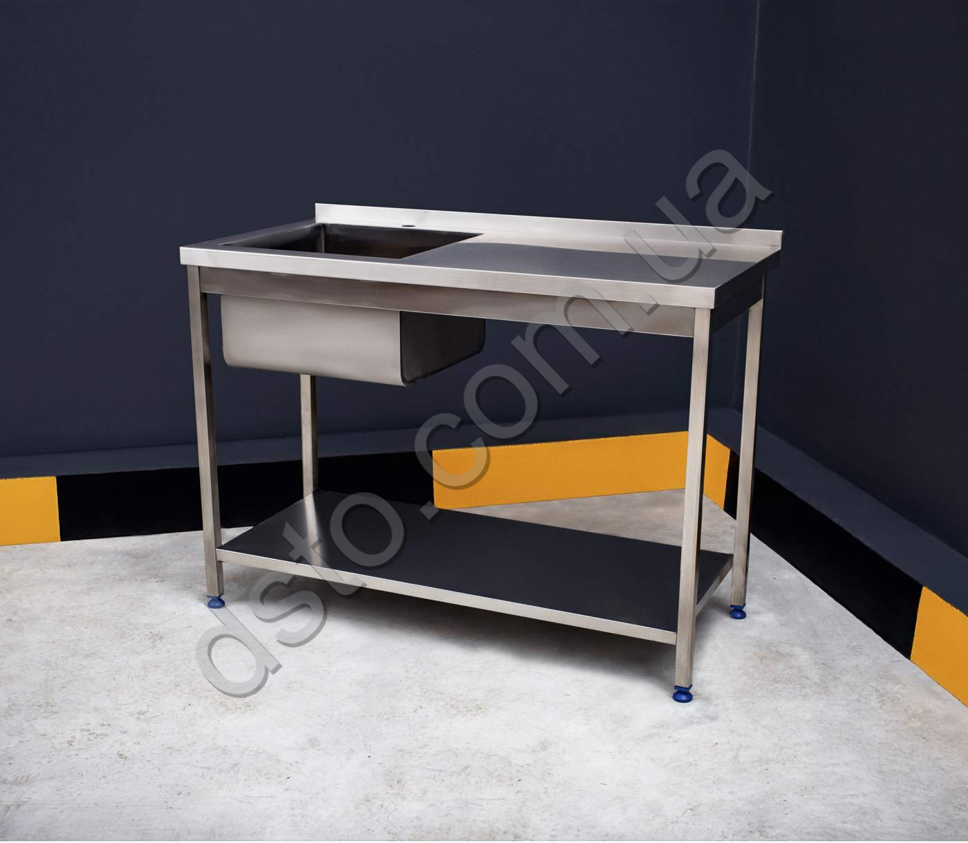 Стол с мойкой сварной слева и полкой из нержавейки 1200х600х850 DS3
