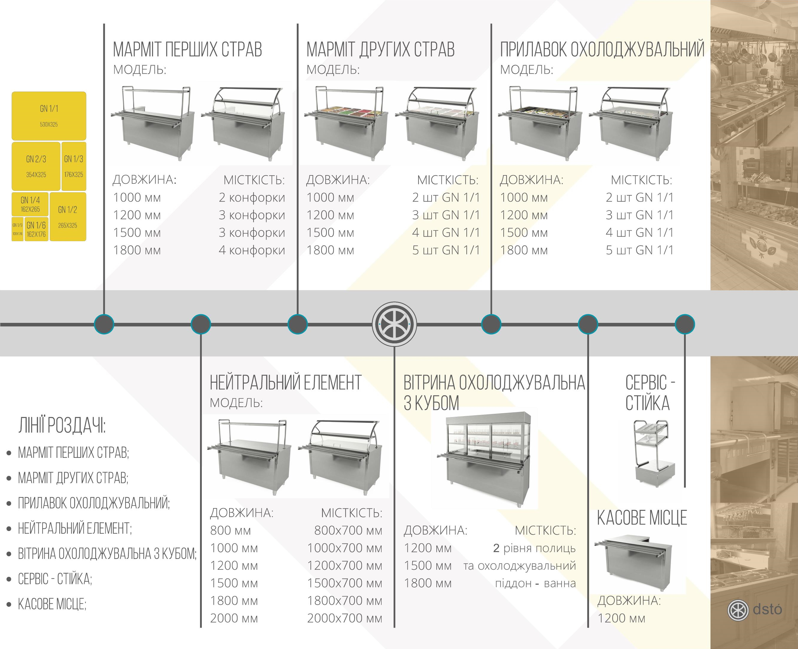 Для дизайнерських комерційних їдалень ми пропонуємо декоровані лінії роздачі: фасад елементів виконується не з нержавіючої сталі, а з меблевих матеріалів, таких як лдсп, пластик, фанера, ламінат та інші. У додатковій комплектації може йти цоколь з нержавіючої сталі. А верхня надбудова виконана у вигляді скляних полиць, закріплених на профільній трубі. Незважаючи на осучаснений вигляд таких ліній самообслуговування, ми не рекомендуємо їх до використання у шкільних їдальнях та їдальнях для співробітників, де практичність та довговічність експлуатації має превалювати над презентабельним зовнішнім виглядом. Для таких їдалень ми наполягаємо на елементах, виконаних повністю з нержавіючої сталі.