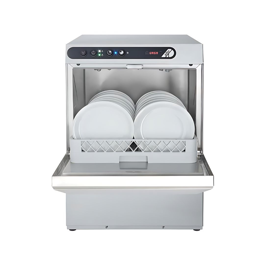 Професійна фронтальна посудомийна машина ADLER ECO 50 PD від італійського бренду ADLER ідеально підходить для закладів громадського харчування. Вона має високу продуктивність — до 50 касет на годину. Підходить для касет розміром 500х500 мм, з висотою завантажувального отвору 355 мм. Витрата води на полоскання за один цикл — 2,8 л, а температура в режимах миття та ополіскування становить 60°C та 85°C відповідно. Машина оснащена електромеханічною панеллю керування та вбудованим дозатором для миючих засобів. Підключається до гарячої або холодної води.