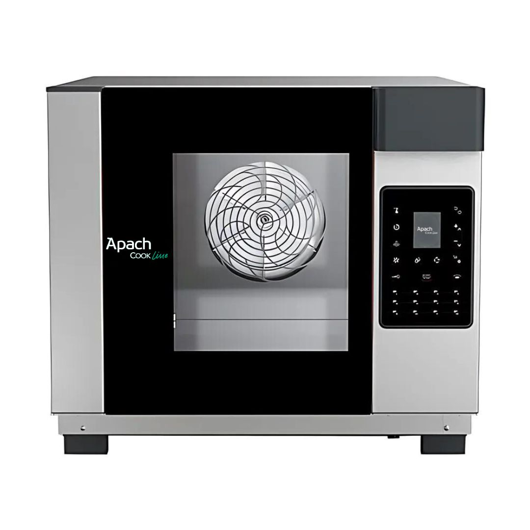 APACH AV043D – це сучасна конвекційна піч з електронним управлінням та сенсорним дисплеєм. З чотирма рівнями і направляючими GN2/3+460х340 мм, ця піч ідеально підходить для компактних кухонь. Має інжекторне пароувлажнення, реверсивні вентилятори, 100 програм приготування та функції нічного приготування і расстоєвого шкафа. Можливість підключення Wi-Fi та завантаження рецептів через USB забезпечують зручність управління. Діапазон температур: 30°С – 260°С, потужність 3,4 кВт, підключення до 220В.