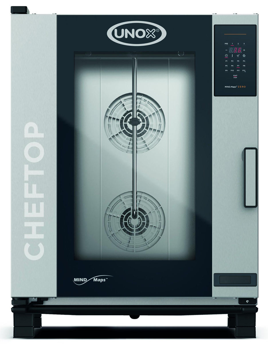 Пароконвектомат UNOX XEVC-1011-EZRM серії CHEFTOP MIND.Maps™ — це професійний електричний прилад, призначений для приготування широкого асортименту страв, включаючи хлібобулочні та кондитерські вироби. Завдяки інноваційній системі зволоження та технології STEAM.Maxi™, він забезпечує ідеальний мікроклімат всередині робочої камери, зберігаючи смакові та корисні властивості продуктів.