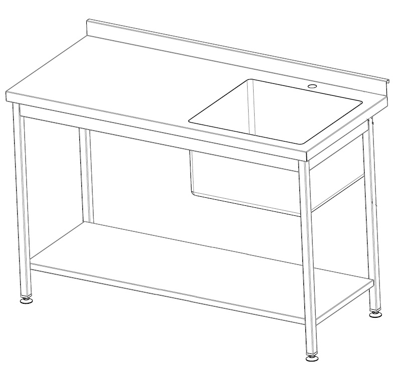 • стільницю виконано з н/ж сталі AISI304 або AISI201, каркас з н/ж сталі AISI430, полицю з оцинкованного металу